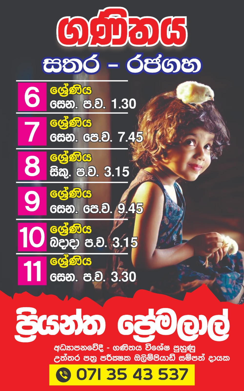 දැනට පවතින ආසන සීමාවන් නිසා කුඩා පන්ති සඳහා පෙර ලියාපදිංචිය අනිවාර්යය.